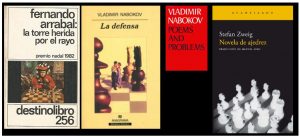 Añadimos una pequeña curiosidad, un libro llamado Poems and Problems, de Vladimir Nabokov. Los poemas, algunos maravillosos, no tienen que ver nada con el ajedrez. Pero al final del libro, se añaden varios problemas ajedrecísticos creados por el propio Nabokov. Os animamos a que os entretengáis resolviéndolos (del libro Poems and Problems hay una edición con textos de Javier Marías y traducción de Félix de Azúa muy recomendable). Asimismo, un poemario compuesto por 64 sonetos dedicados al ajedrez «Este juego es infinito», del autor Francisco Delgado-Iribarren Cruz, un libro que, como sabéis, tuvimos el privilegio de que fuese presentando en la escuela Ajedrez con cabeza. Y Nieve negra, de Jorge Benítez, un magnífico libro con multitud de historias interesantísimas y con las que seguro disfrutáis.